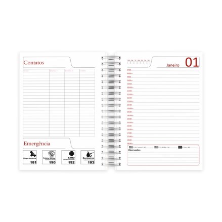 Miolo de Agenda Permanente Refilado com 15 furos  - 2x2 Cores - 380 páginas - Off-set 63g com Mapa 4x4 Cores - Formato 139x194mm