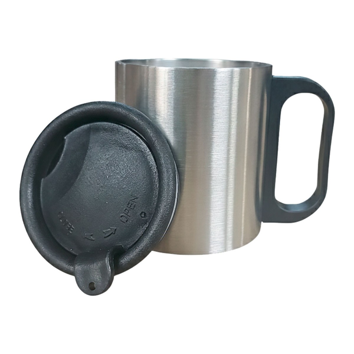 Caneca Inox 180ml com Cabo e Tampa Plástica e Trava de Segurança