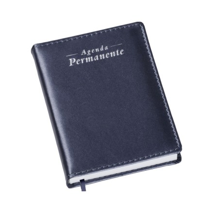 Agenda Compacta Permanente Metalizada Lisa Azul - Capa Couro Sintético - Miolo Permanente em Papel Off-set 63g - 1x1 cor - 384 páginas - Dados Pessoais - Contatos - Formato da Agenda: 110x155mm