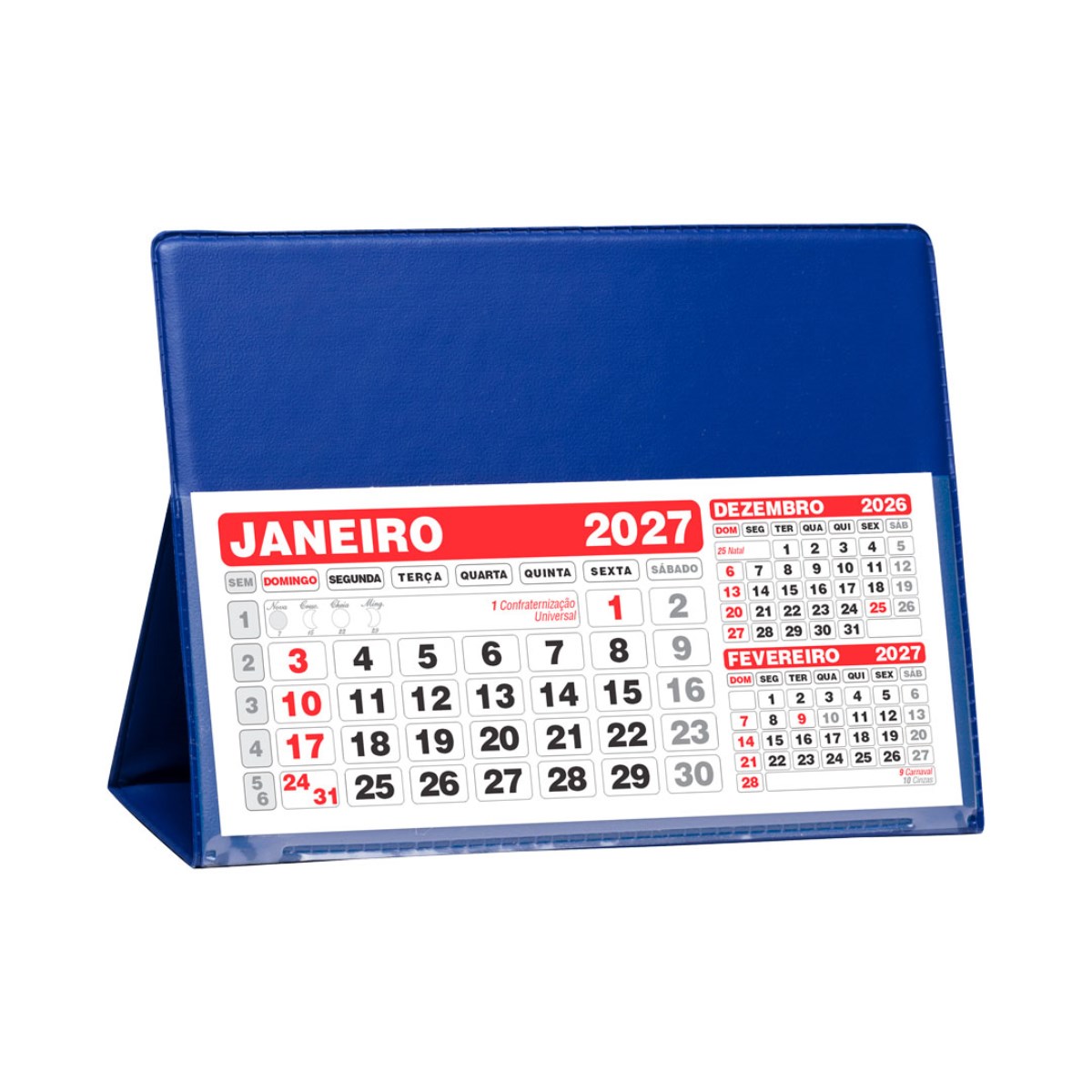 Calendário de Mesa Grande em PVC Azul Royal - Acompanha PVC + REFIL 2026 - Formato Fechado - 117mm X 165mm.