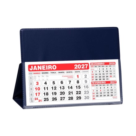 Calendário de Mesa Pequeno em PVC Azul - Acompanha PVC + REFIL 2026 - Formato Fechado - 103mm X 120mm.
