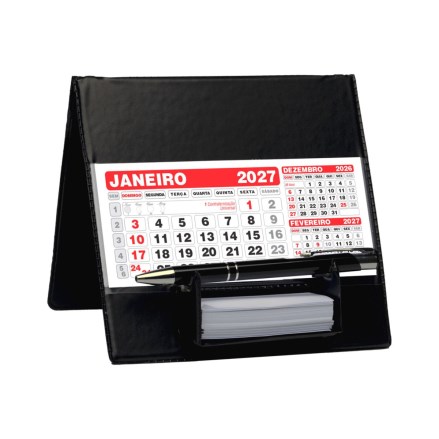 Calendário de Mesa com Suporte para Rascunho em PVC Preto - Acompanha PVC + Refil + 100 folhas de Rascunho - Formato Fechado - 155mm X 165mm - NÃO ACOMPANHA CANETA