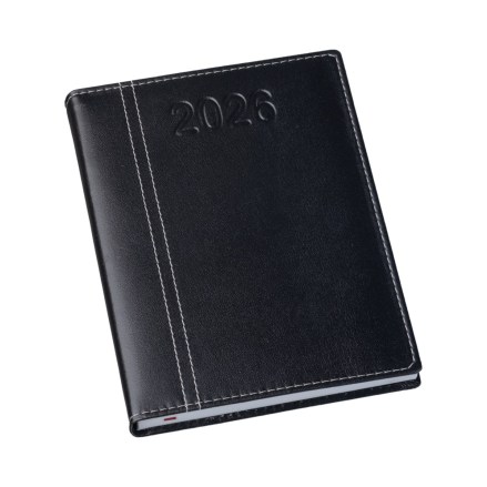 Agenda Diária Capa Lisa Preta com Costura - Capa: Couro Sintético 0,6mm - Miolo de Agenda Diária - 2x2 Cores - 344 páginas - Off-set 63g com Mapa 4x4 Cores - Índice Telefônico - Planejamento - Formato da Agenda: 145x200mm