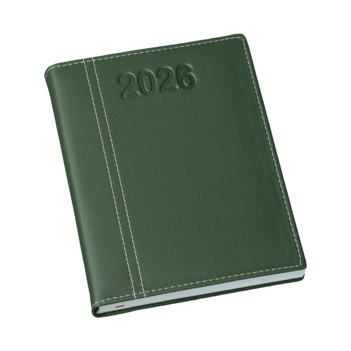 Agenda Diária Capa Lisa Verde com Costura - Capa: Couro Sintético 0,6mm - Miolo de Agenda Diária - 2x2 Cores - 344 páginas - Off-set 63g com Mapa 4x4 Cores - Índice Telefônico - Planejamento - Formato da Agenda: 145x200mm