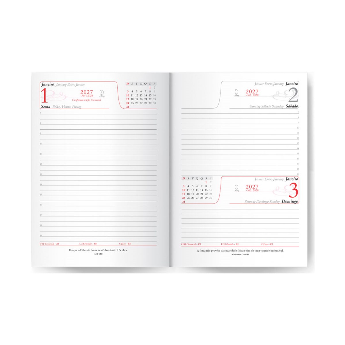 Agenda Diária Capa Croco Diagonal Preta - Capa: Couro Sintético 0,6mm - Miolo de Agenda Diária - 2x2 Cores - 344 páginas - Off-set 63g com Mapa 4x4 Cores - Índice Telefônico - Planejamento - Formato da Agenda: 145x200mm